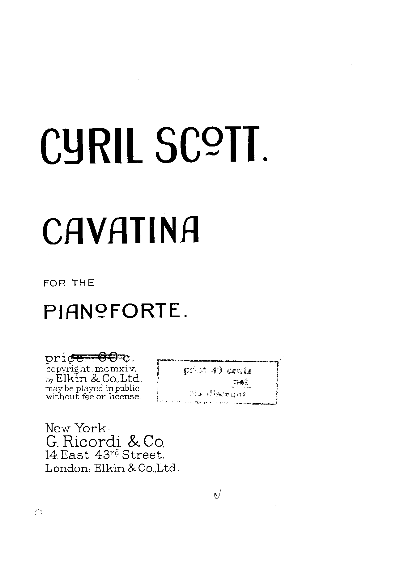 Publisher. Info. London: Elkin & Co., 1914. Plate E. & Co. 789.