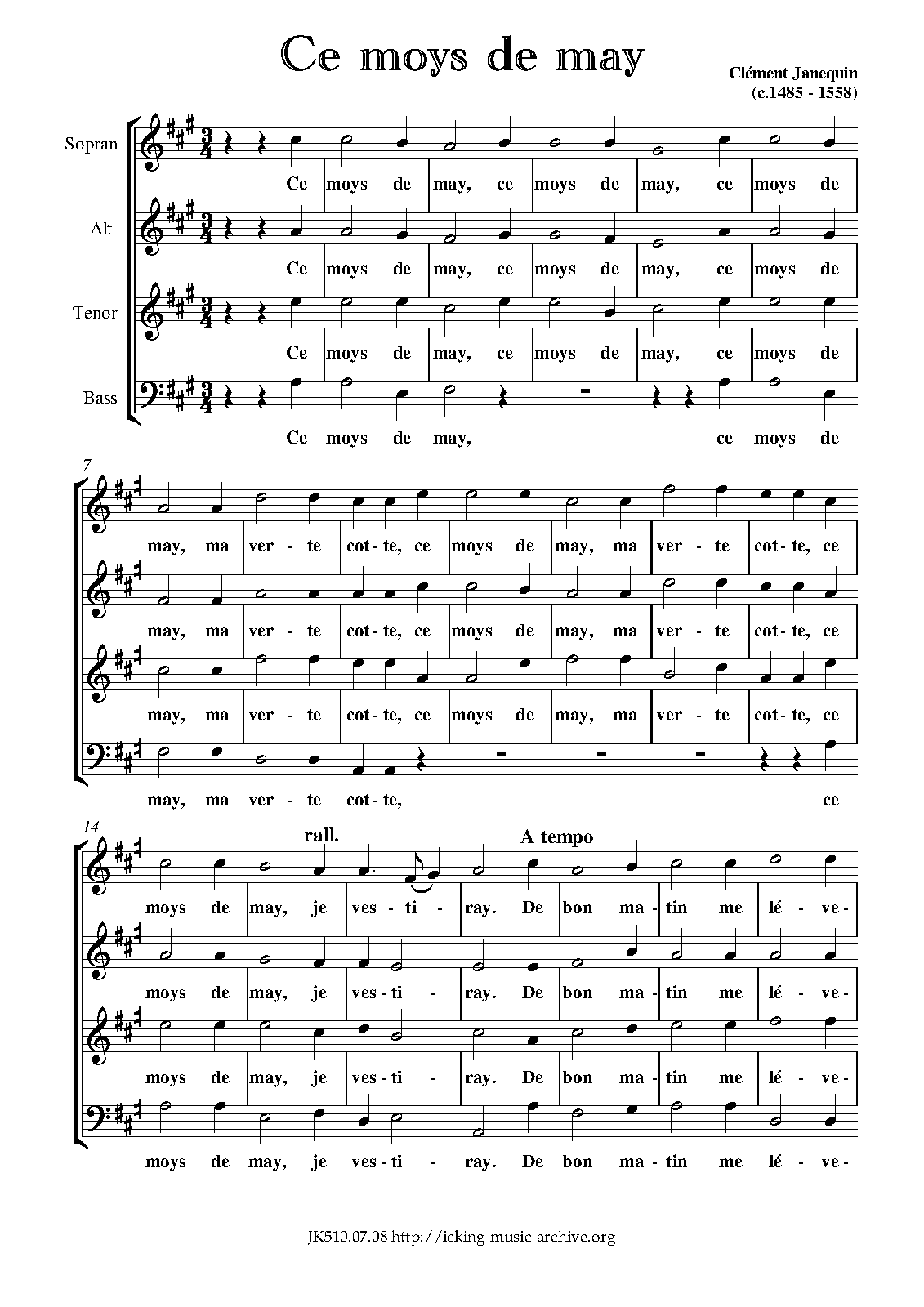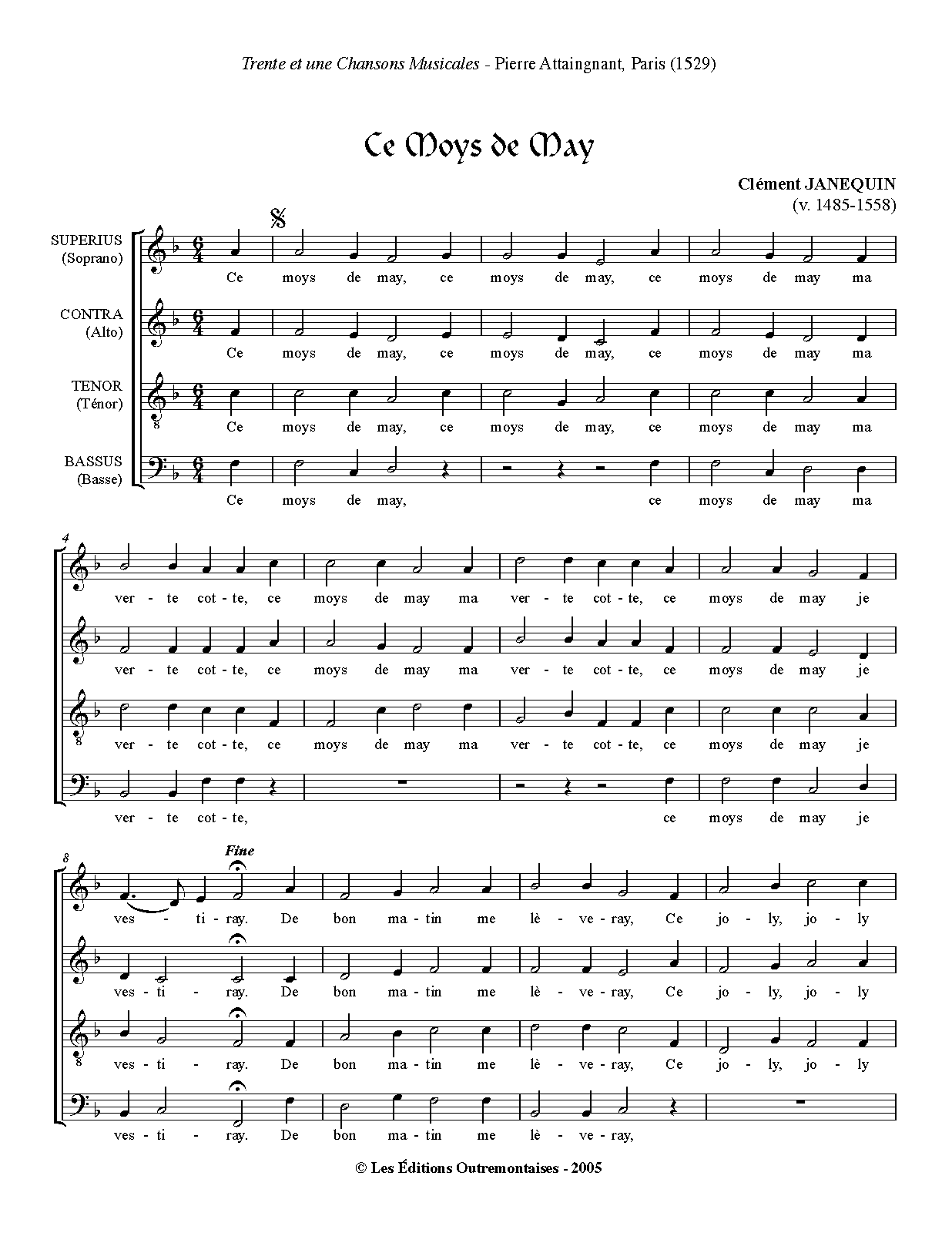 | First Publication | 1529 in 31 Chansons musicales a quatre parties (No.21) |
