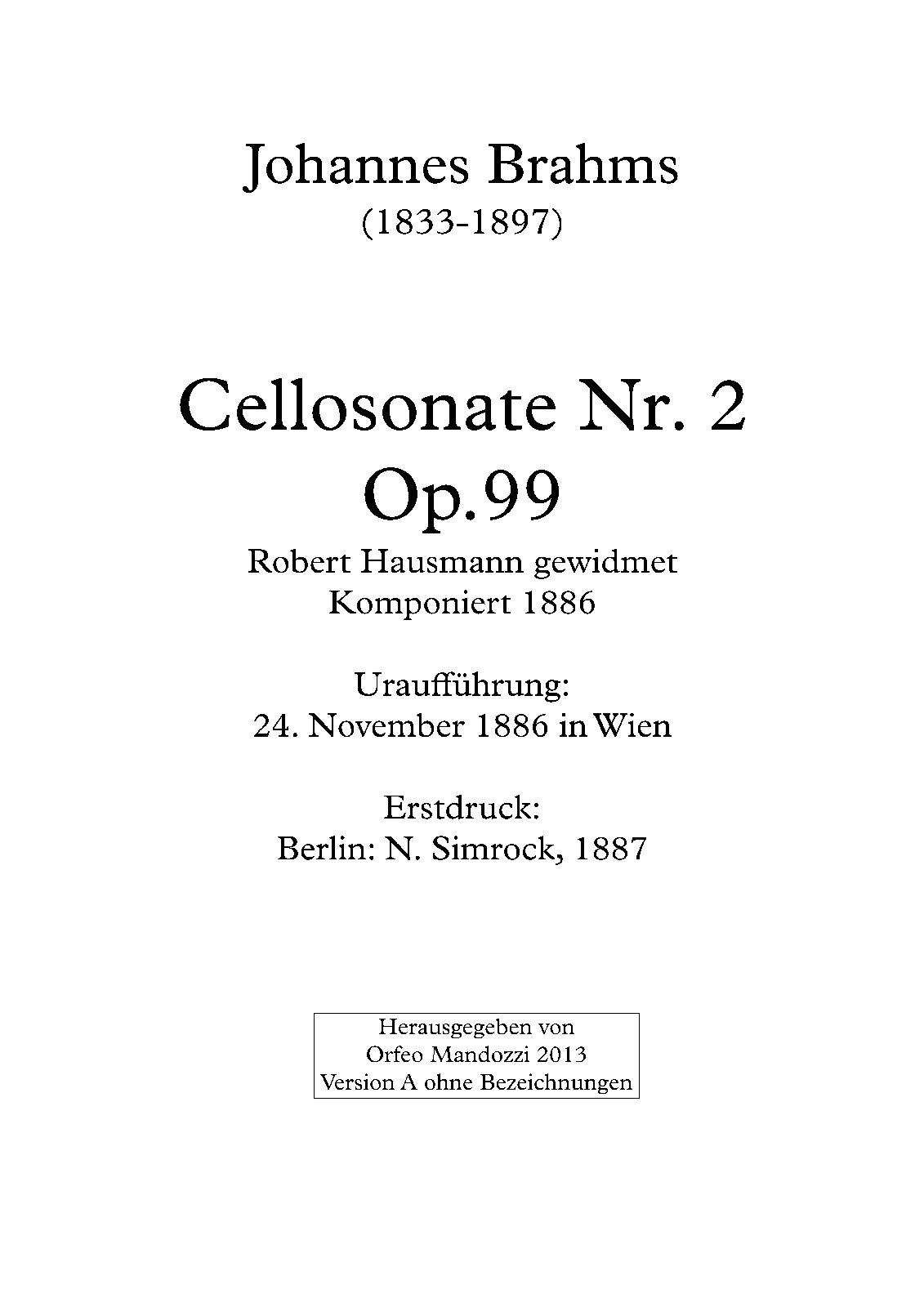 Sonate pour violoncelle et piano n° 2 (Brahms); Sonata for Cello and Piano No. 2 in F Major, Op. 99