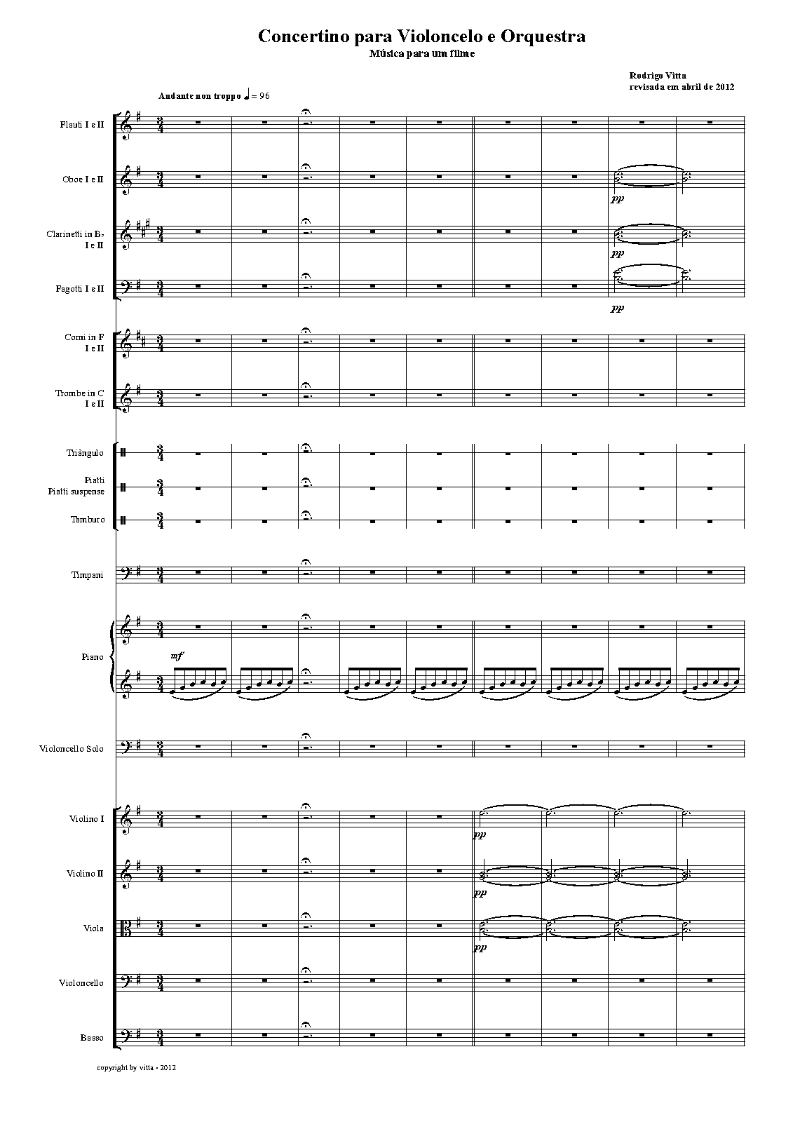 Questa musica è stata composta nel 2005 per la "curtametragem a "Às 3h, às 7h e às 11h". La prima idea del compositore era di avere fatto la musica per Violoncello e Orchestra, ma per mancanza di risorse, la versione per il film è stato detenuto per Violoncello e Pianoforte. Adesso la musica è stato rivisto e sono stati resi disponibili in versione originale.