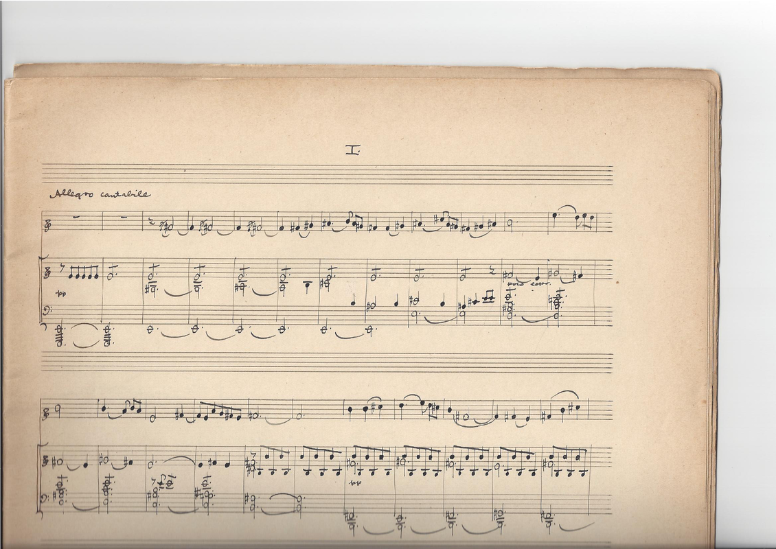 Short score autograph (copied by composer), the "I" indicates another movement may have been considered, so unfinished in that sense