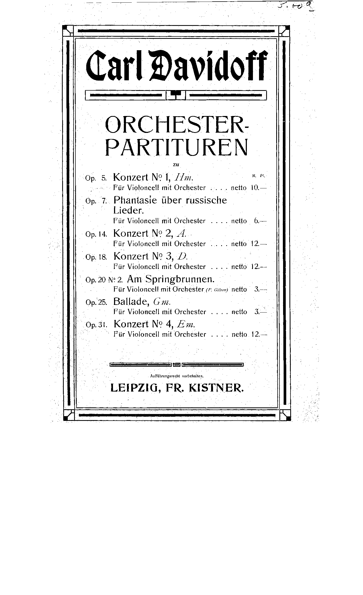 | Genre Categories | Concertos; For cello, orchestra; Scores featuring the cello; |