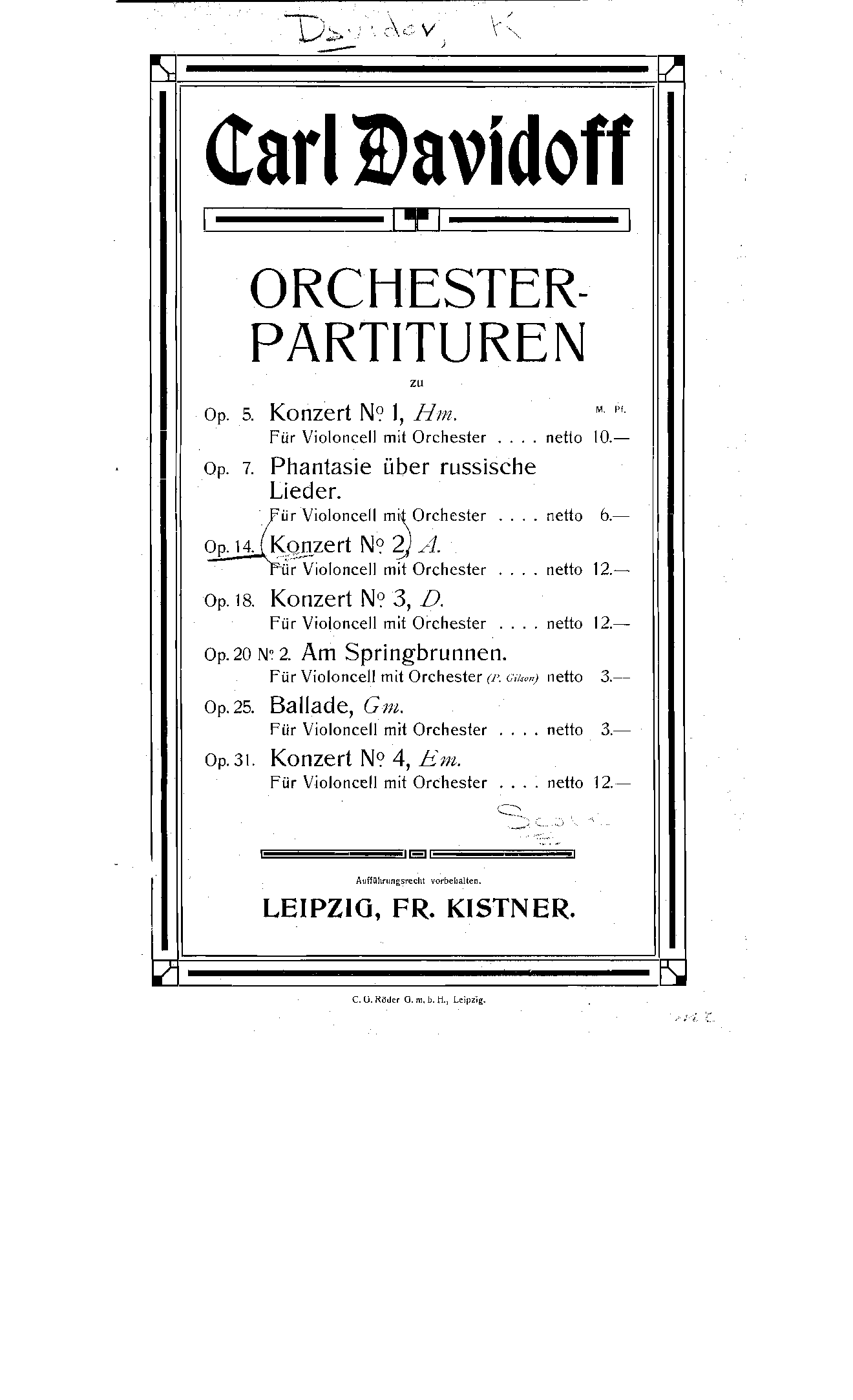 | Opus/Catalogue NumberOp./Cat. No. | Op.14 |