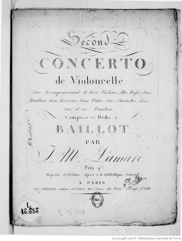 Second Concerto de violoncelle avec accompagnement de deux violons, alto, basse, deux hautbois, deux bassons, 2 flûtes, deux clarinettes, 2 cors et 1 trombone