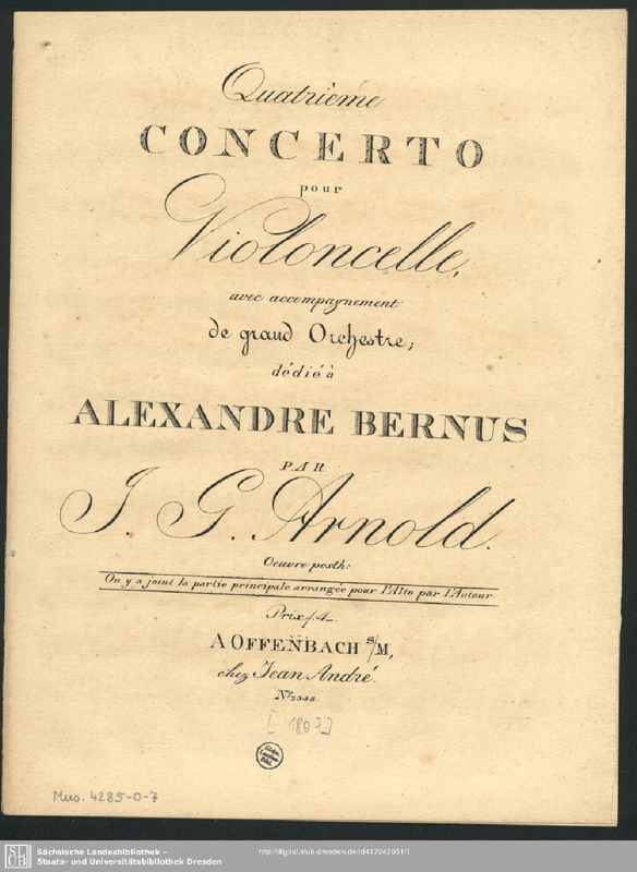 | Alternative. Title | Quatrieme Concerto pour Violoncelle avec accompagnement de grand orchestre ... on y a joint la partie principale arrangee pour l'Alto par l'Auteur. |