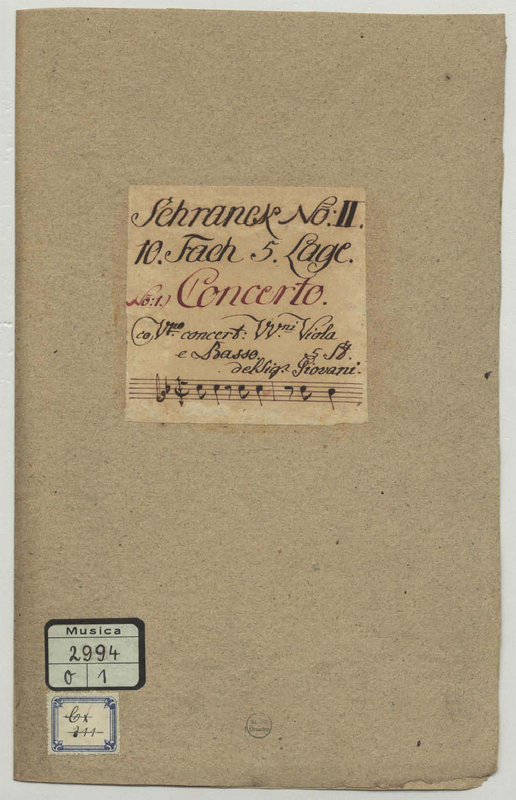 Recorded as a work by Lulier in a slightly different format as the one above. The recorded version is a "Chamber Concerto" for cello solo, 2 violins and continuo. No manuscript is is listed in RISM which matches this performance. If such a manuscript could be found, then the manuscript in SLUB must be considered a reworking, with a the creation of a ripieno 1st violin part.