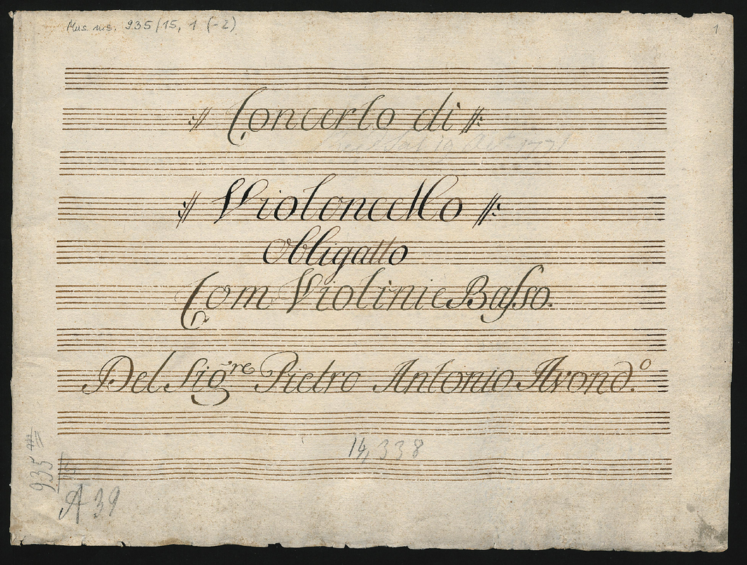 | Alternative. Title | Concerto di Violoncello obligatto Com Violini e Basso |