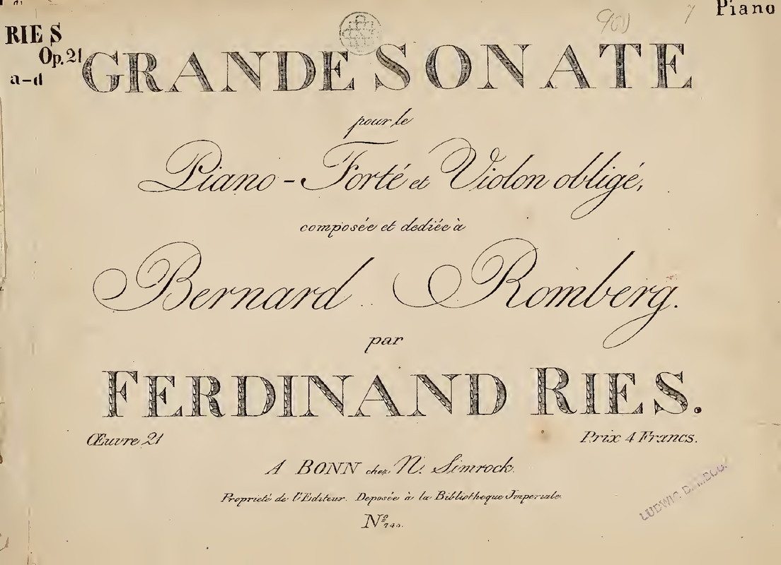 Bonn: N. Simrock, n.d.[1810]. Plate 745.