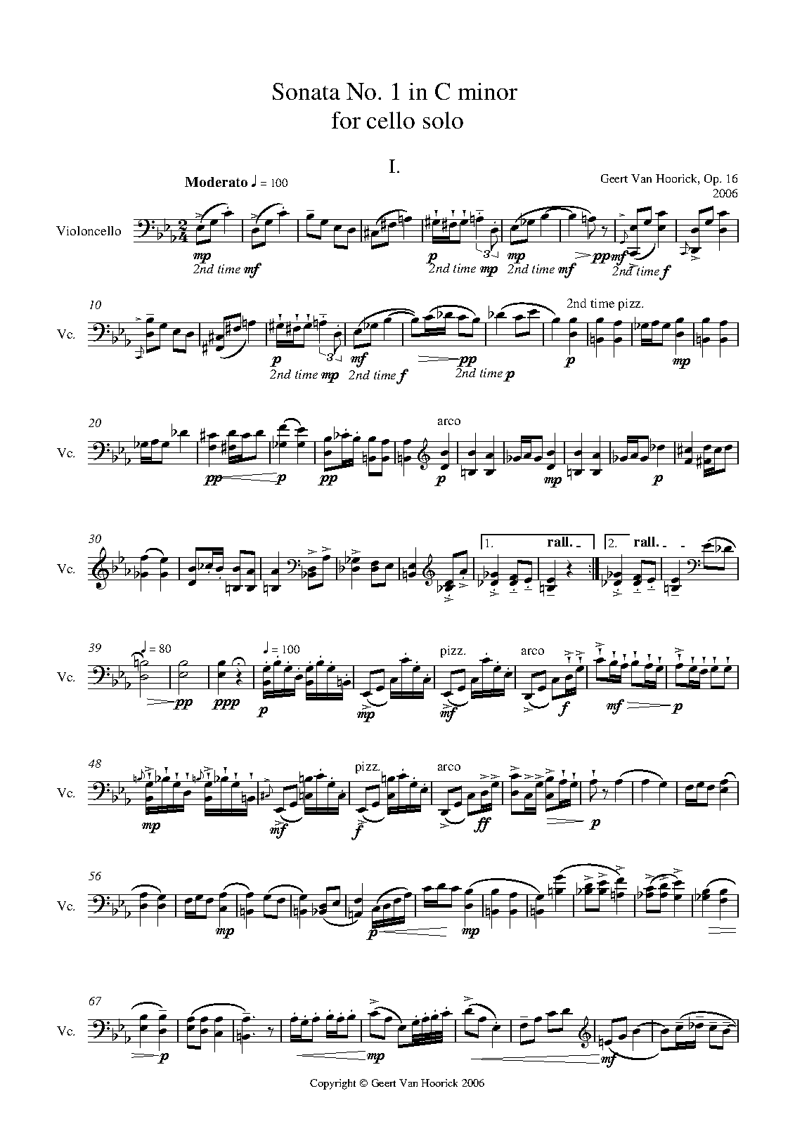 This cello sonata is a modern-classical composition for cello solo. The 1st movement is moderately fast and in sonata form. The 2nd movement is slow and in ABA form. The final movement (largely revised in 2014) is fast and in rondo form. Digital performance based on recording in Sibelius 4 with Kontakt Gold. Score moving videos are on my YouTube-channel.