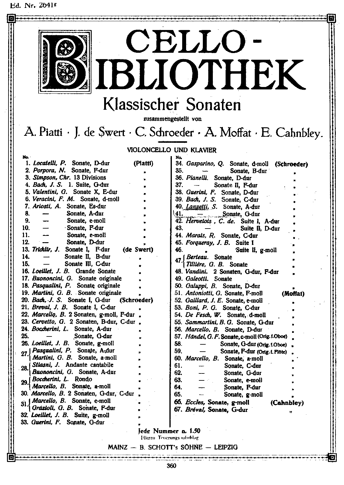 Exactly the same edition was published by Augener in their Classical Violoncello Music series (Edition no.5522, n.d. Strangely, its Plate no. is the same as Lanzetti's no.1 cello sonata : 11037).