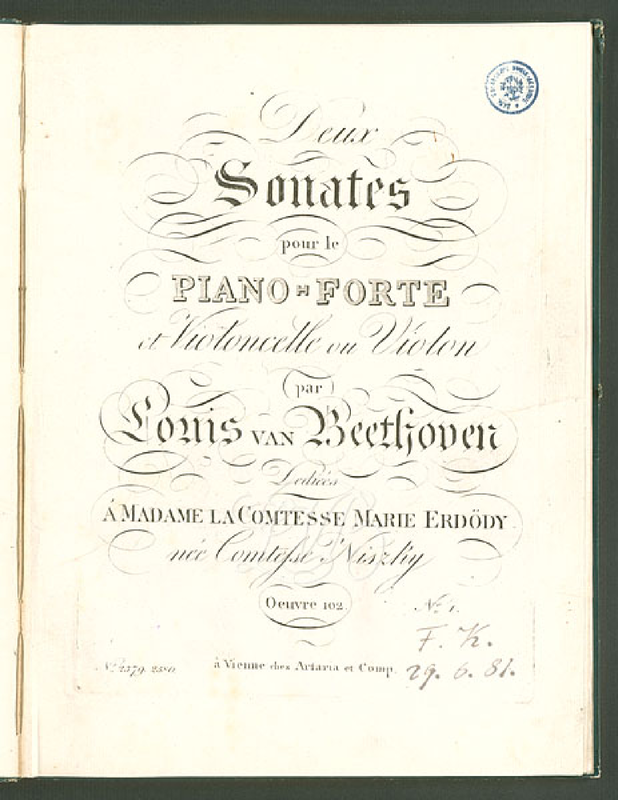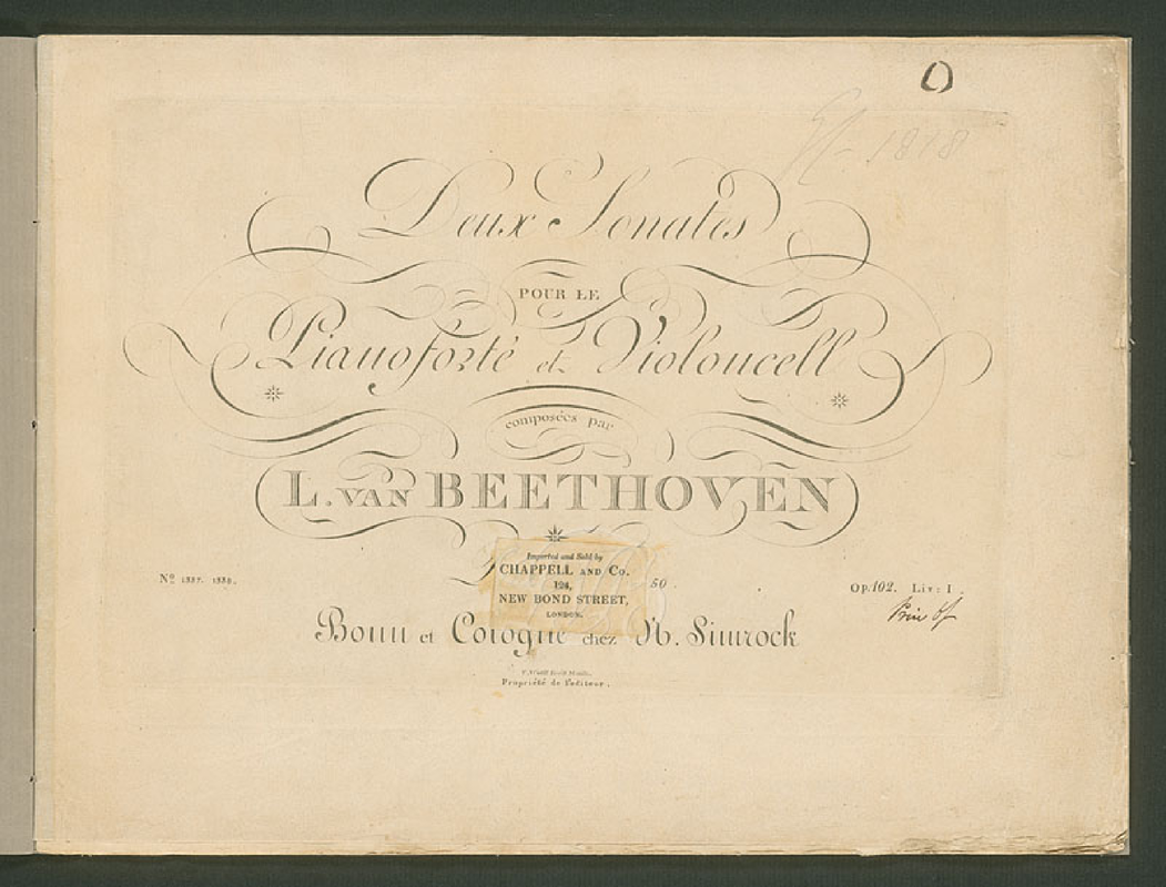 Misc. Notes Artaria's editions of the cello sonatas are their 2nd, not their first editions, and were released two years after the Simrock editions.