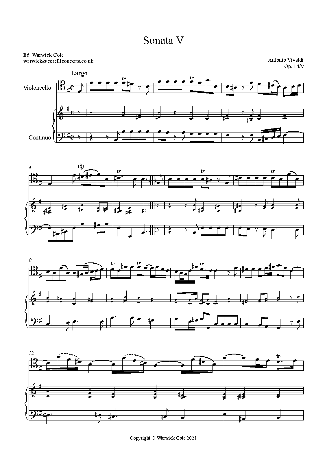 | Name Aliases | Sonate voor violoncello en basso continuo nr. 5 (Vivaldi); sonata in Mi minore per violoncello e basso continuo; Six Sonatas No. 5; Cello Sonata no. 5 in E minor, RV 40; Sonata for cello & continuo No. 5 in E minor, RV 40, Op. 14/5; Sonata for cello and continuo in E minor (RV 40) |