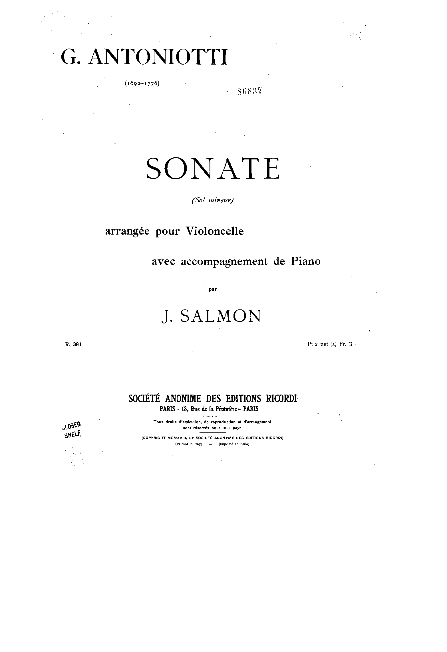 XII Sonate, le prime cinque a violoncello solo e basso, e le altre sette a due violoncelli overo due viole da gamba