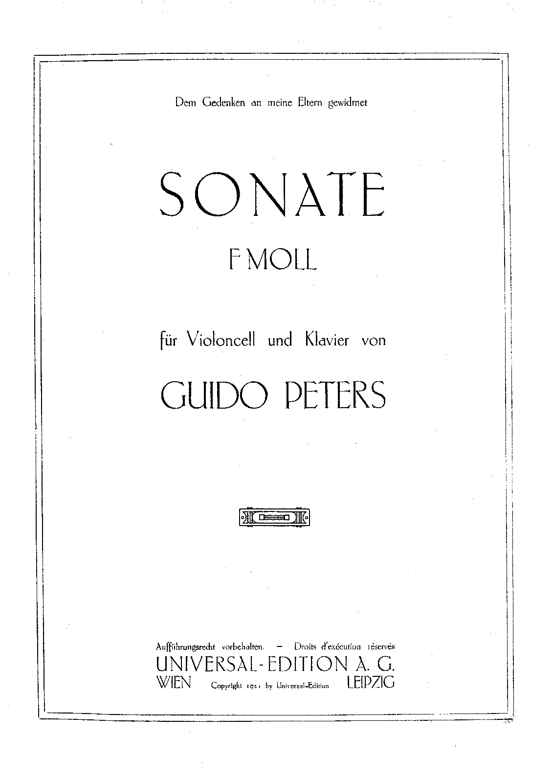 "Geschaffen 1895". One of at least two cello sonatas Peters wrote in the 1890s (there is a manuscript sonata in C major, Op.7, 1894-5 as well.)