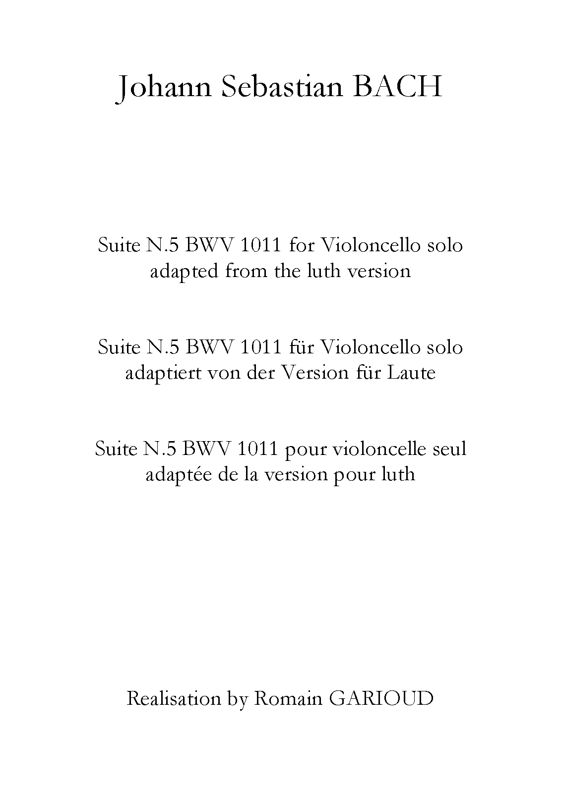 | Name Aliases | Suite pour violoncelle n° 5; Suite No. 5 for Solo Cello in C Minor, BWV 1011 |
