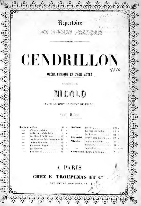 Paris: E. Troupenas et Cie., n.d.(after 1844). Reissued - Brandus & Cie., n.d.(1853?). Plate B. & Cie. 8,261