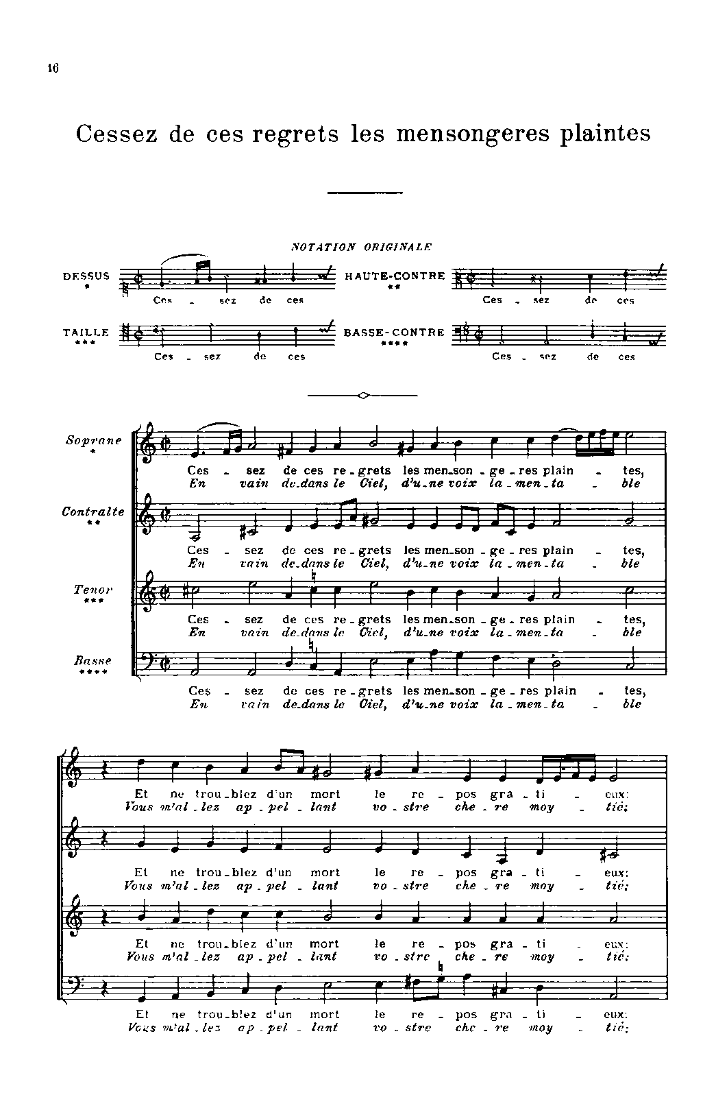 | Work Title | Cessez de ces regrets les mensongères plaintes |