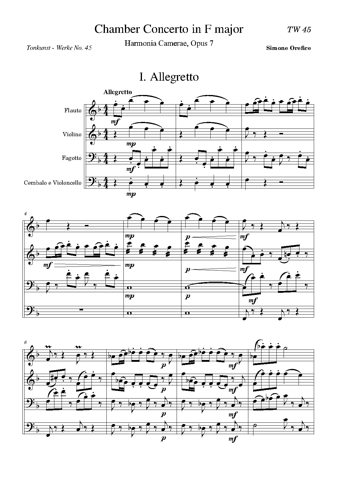 | Work Title | Chamber Concerto in F major, TW 45 |