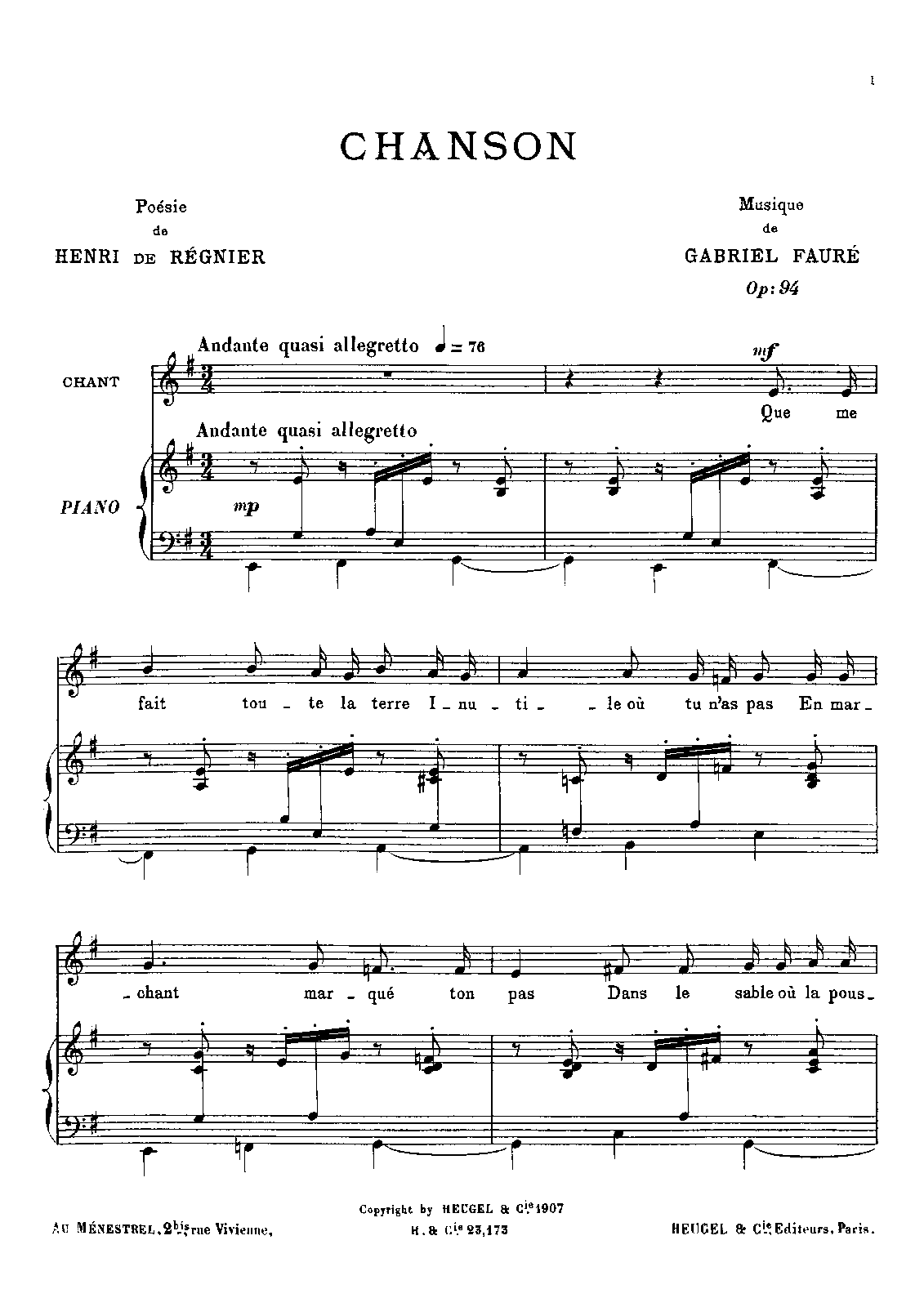 | First Publication. | 1907 - Paris: Heugel |