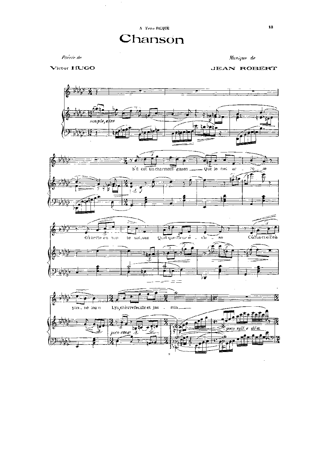 | Genre Categories | Chansons; Songs; For voice, piano; |