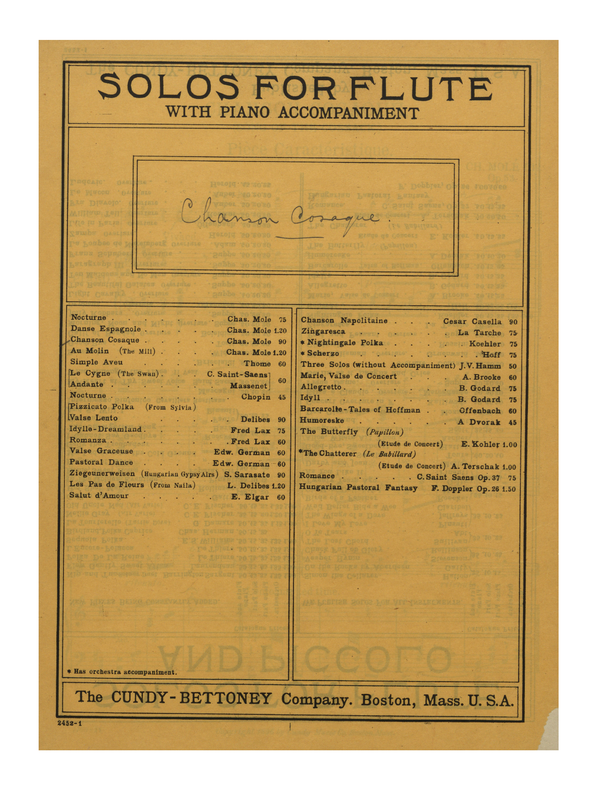 | Genre Categories | Character pieces; Songs; For flute, piano; |