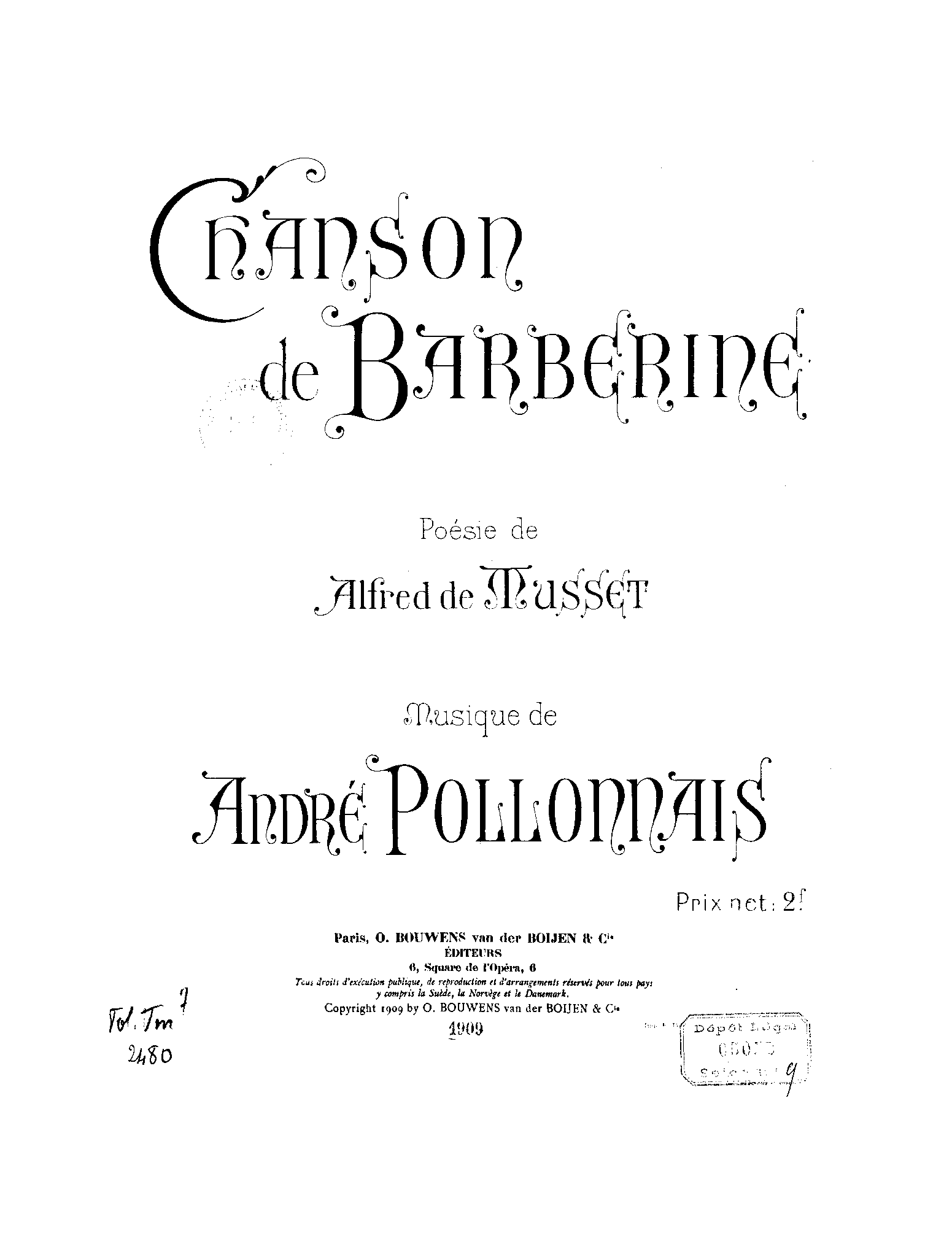 | Genre Categories | Chansons; Songs; For voice, piano; |