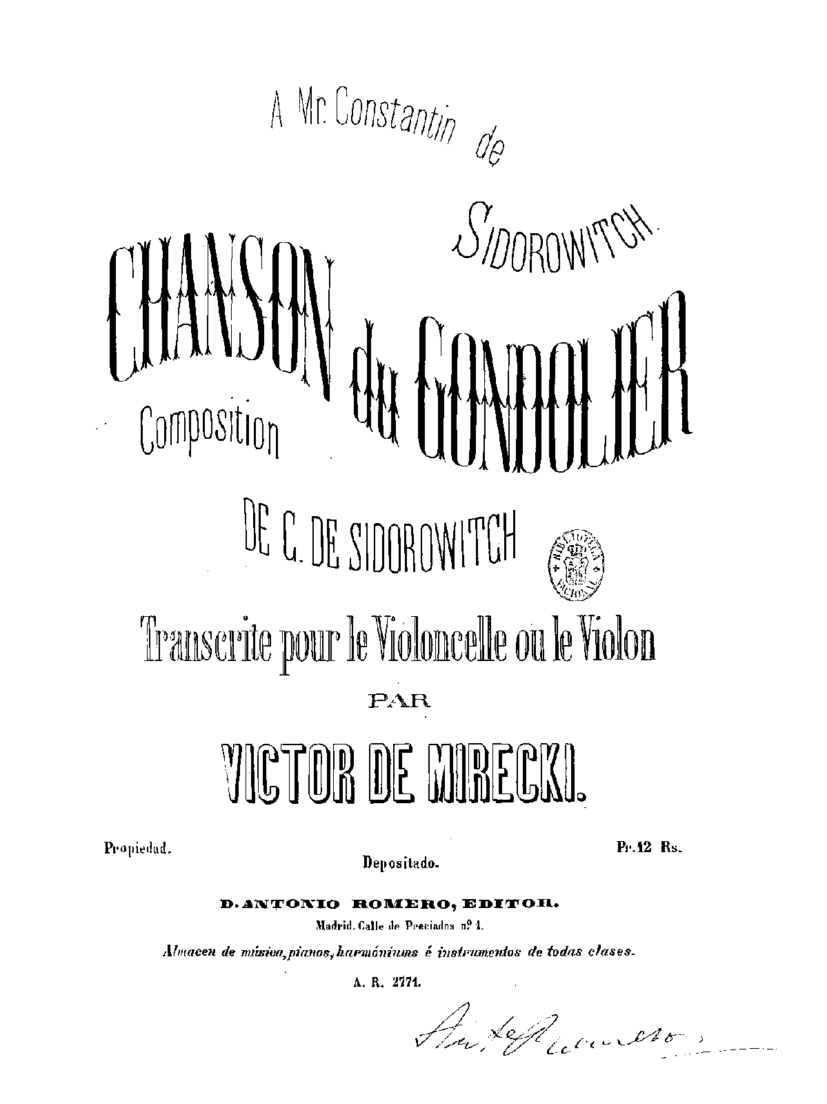 Given the French title, might possibly be something in earlier issues of Bibliographie de la France, re point 1. Re point 2, The only Mirecki I'd run across before was Frantiszek Mirecki, but there are entries in 1887 issues of BdlF for a composer who Worldcat says is Maurice de Mirecki, and perhaps some alternate names for Sidorovic(h) might suggest themselves (for one or another or a third reason- I am not suggesting any definite analogy) with some browsing of more than three sources :D Just for example and spreading wings, VIAF.org suggests that there was a "Sidorovič, Konstantin" though I have no idea if this was the same person. Still- explore?...- Schissel