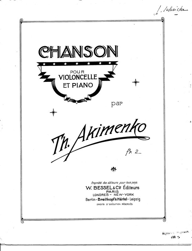 | Genre Categories | Chansons; Songs; For cello, piano; |