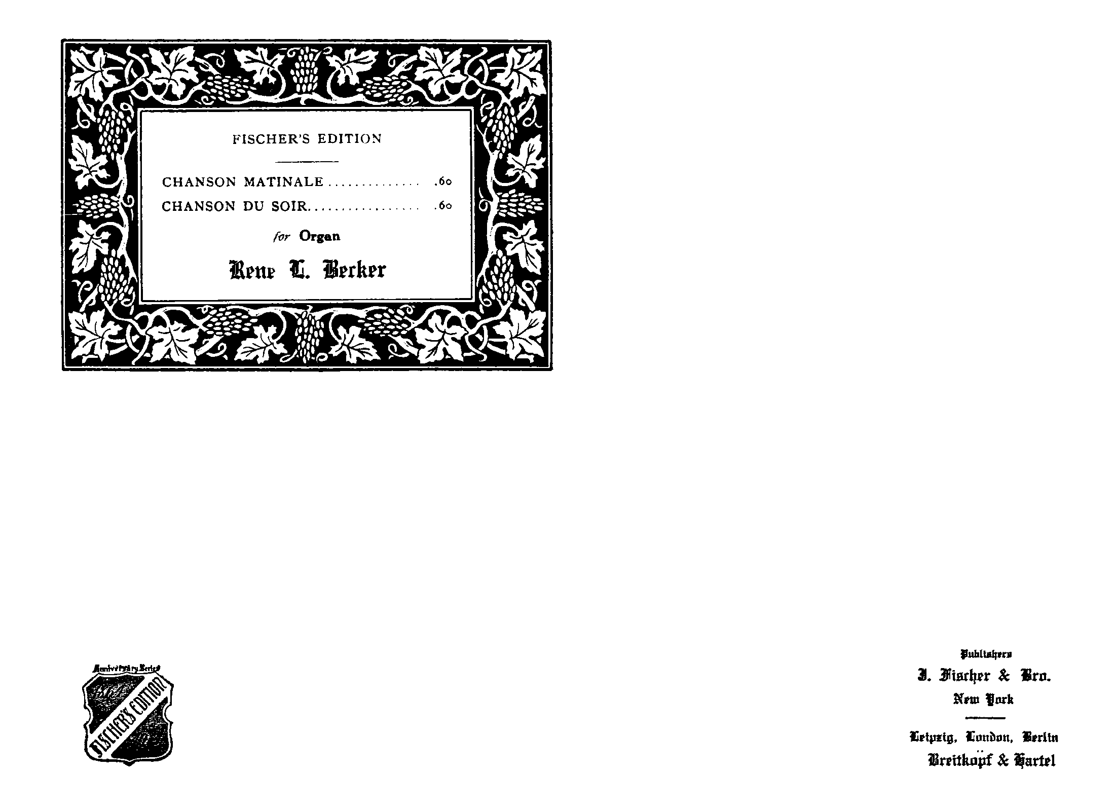 | First Publication. | 1914 – New York: J. Fischer & Brother |