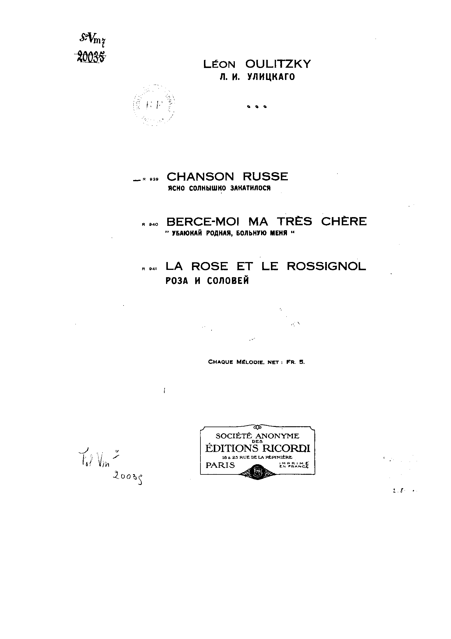| Text Incipit | Ясно солнышко закатилося (Russian) Rouge le soleil meurt à l'horizon (French) |