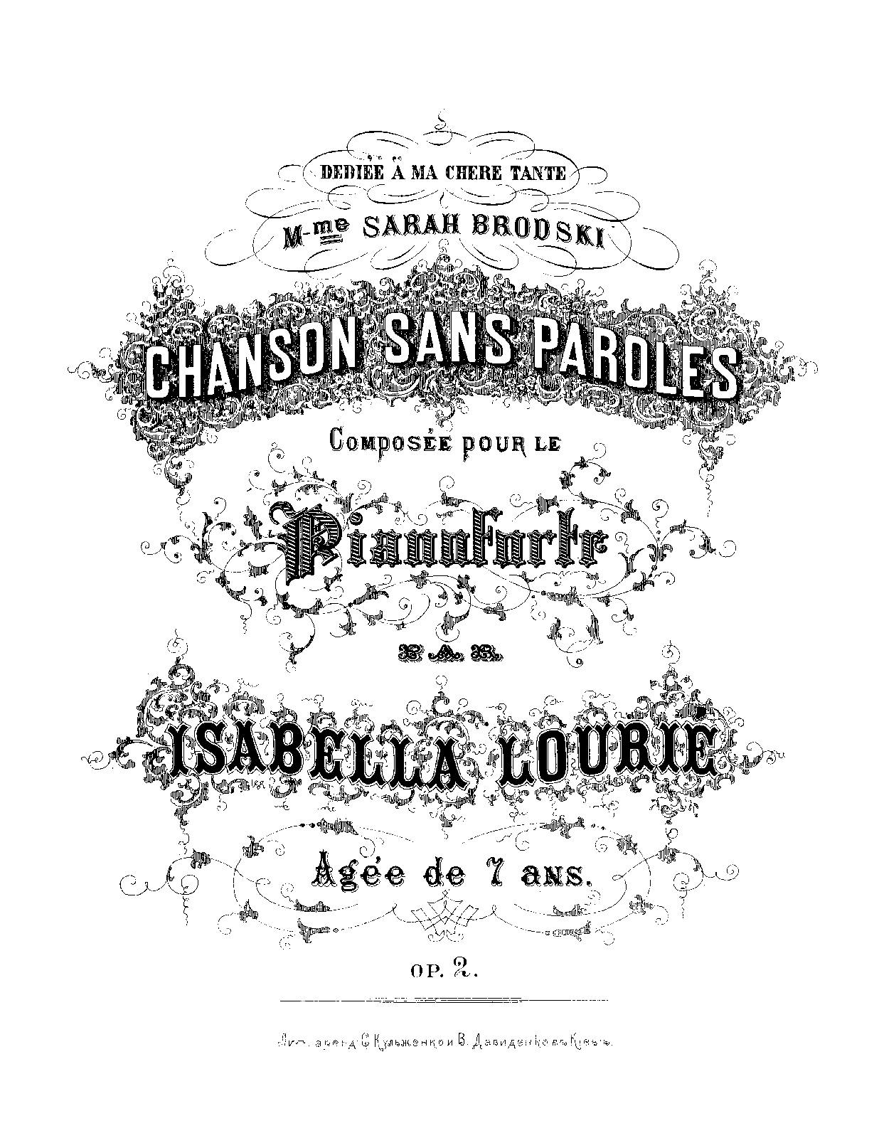 | Dedication | Dediée à ma chère Tante Mme. Sarah Brodski |