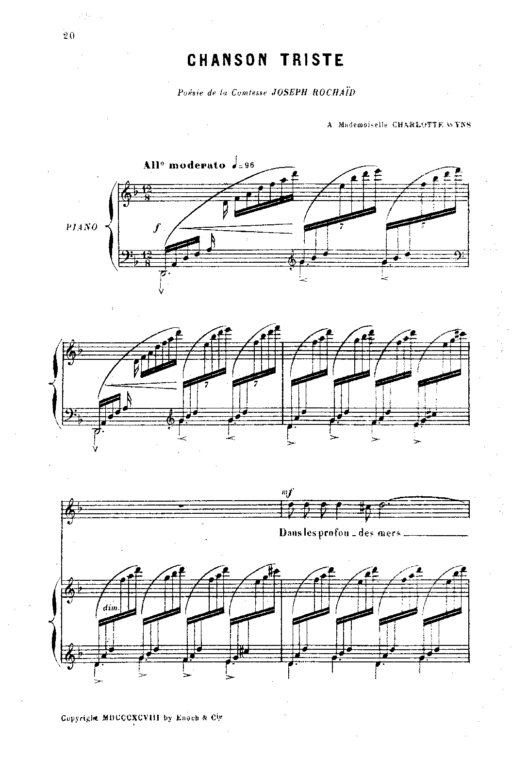| Dedication | à Mademoiselle Charlotte Wyns |