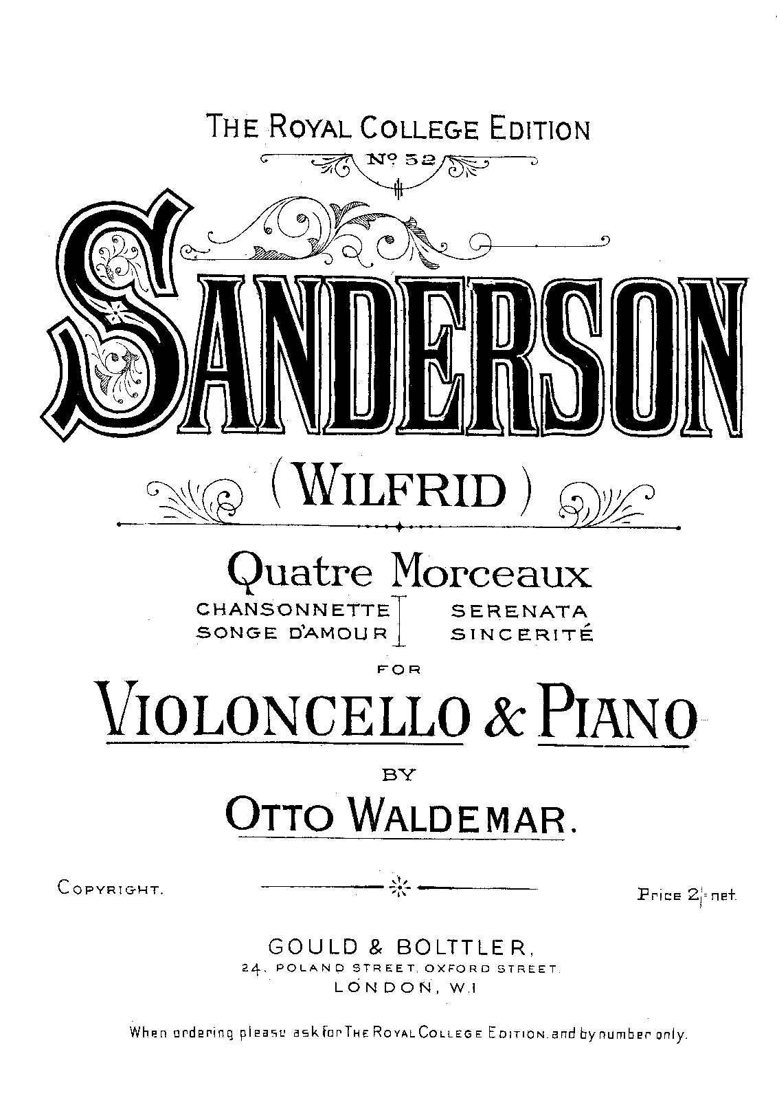 Quatre Morceaux, The Royal College Edition, No.52 London: Gould & Bolttler, 1913. Plate G. & Co. 1280.