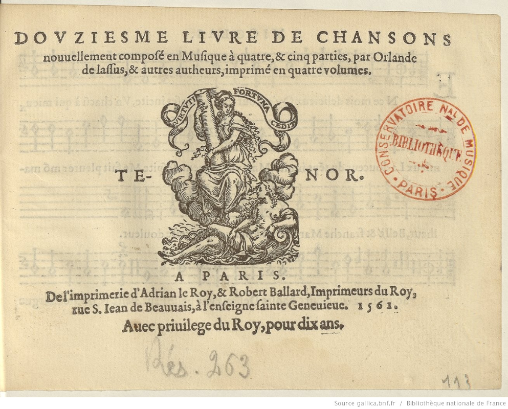 Paris: Adrian le Roy & Robert Ballard, 1561.