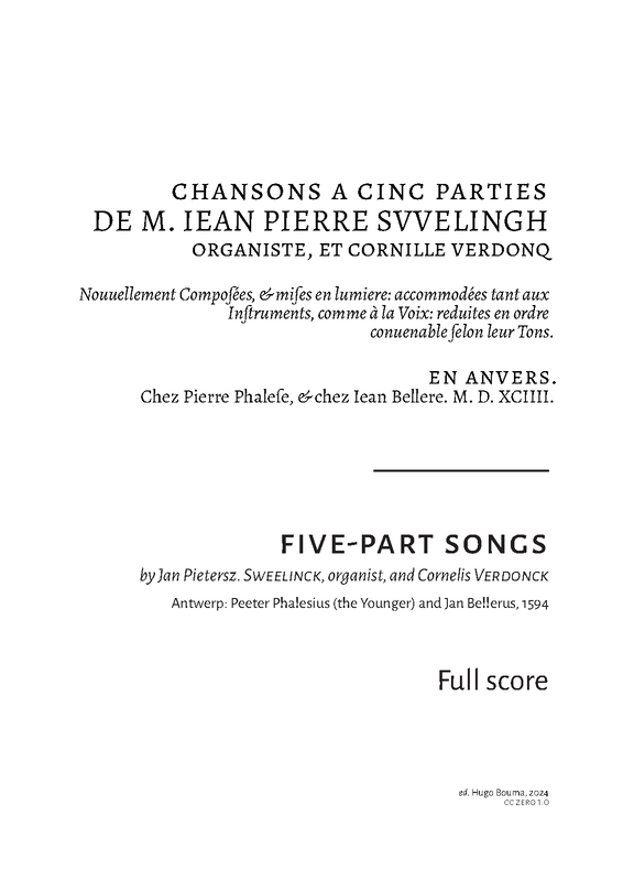 | Genre Categories | Chansons; Songs; For 5 voices; |