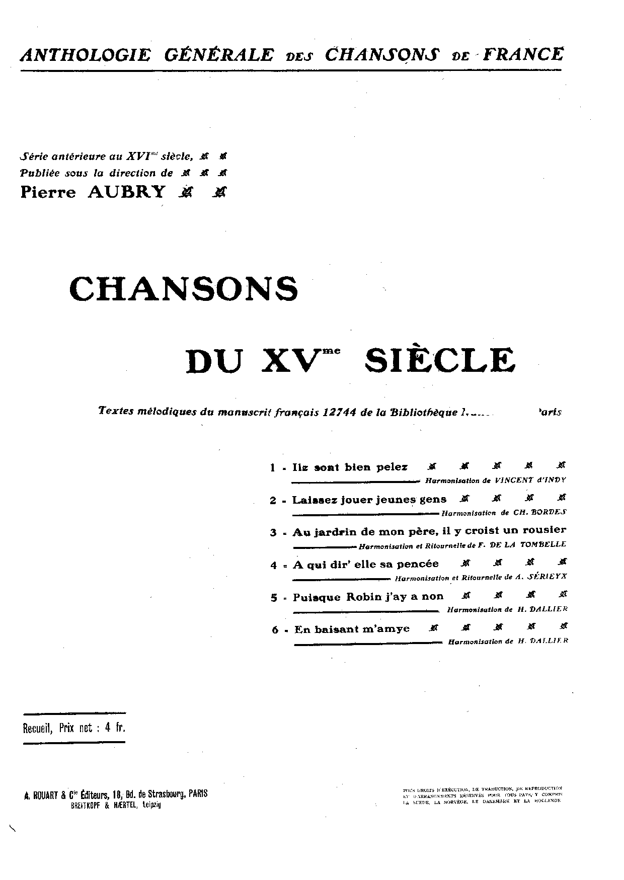 | Work Title | Chansons du XVme siècle |