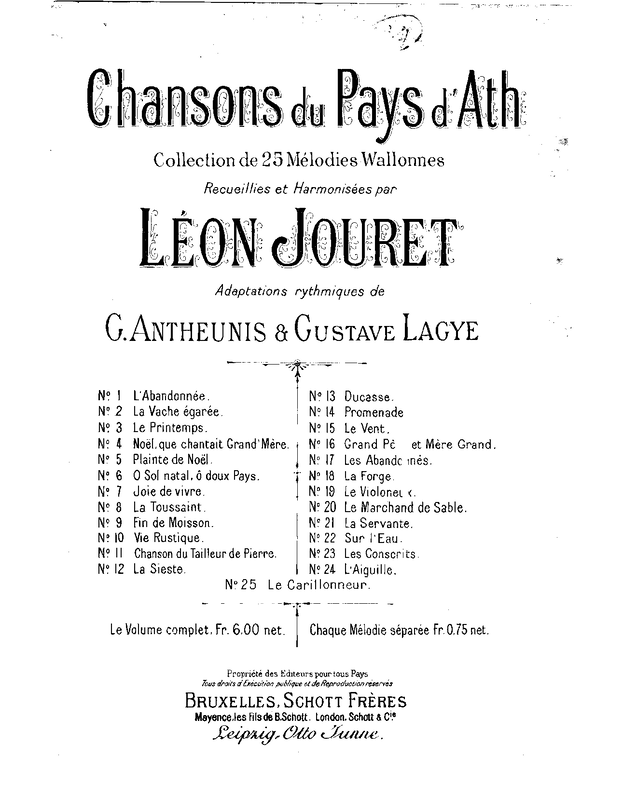 | Alternative. Title | Collection de 25 mélodies Wallonnes, Collection of 25 Walloon Melodies |