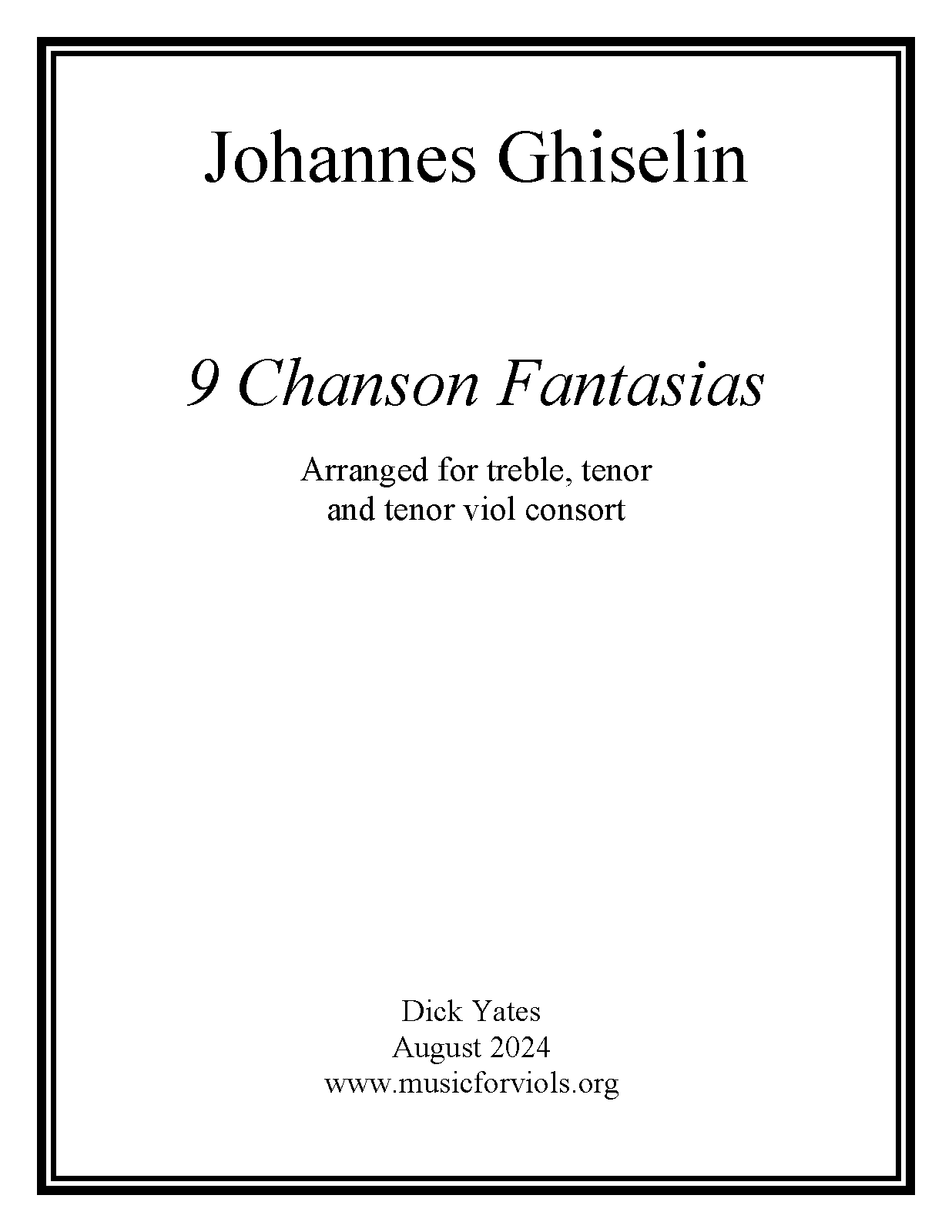 Misc. Notes Arranged for treble, tenor and bass viol consort. Full scores. 26 pages.