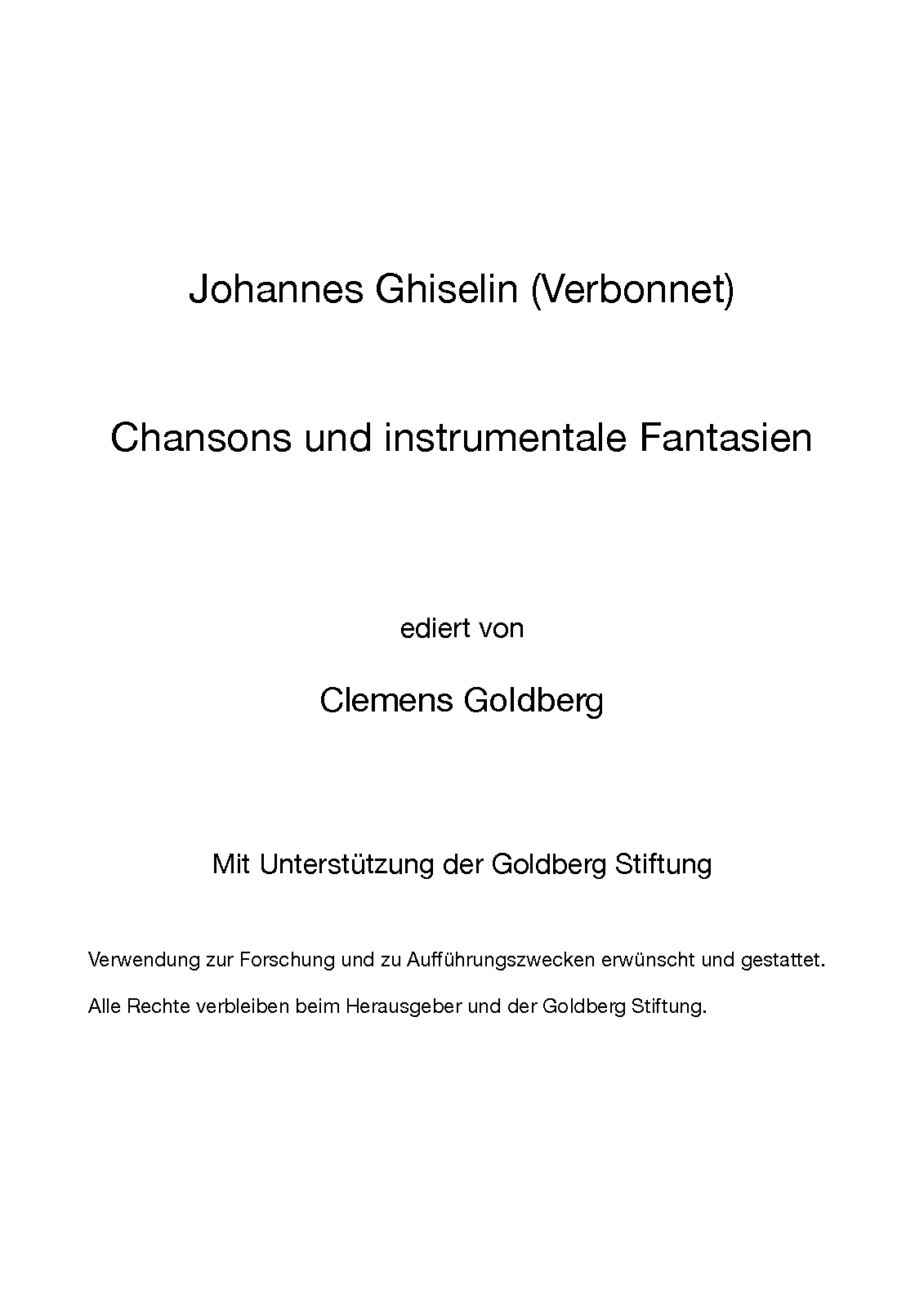 Alternative. Title Chansons und instrumentale Fantasien ediert von Clemens Goldberg