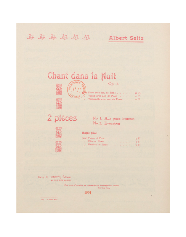 | Dedication | 1. Victor Balbreck (flute or oboe part: Gaubert, Bas) 2. Alice Jurgenson (flute or oboe part: Perret, Gaudard) |