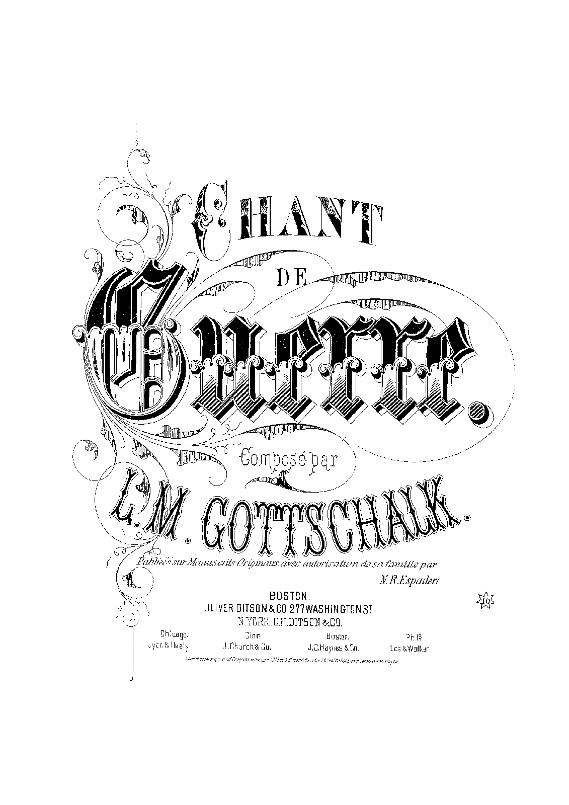Also, published (along with El Cocoyé) by Escudier, Paris, 1874: Publication noted in the Bibliographie de la France 2e série, 63e année, Nº 16, 18 Avril 1874, p.201, r.1174.