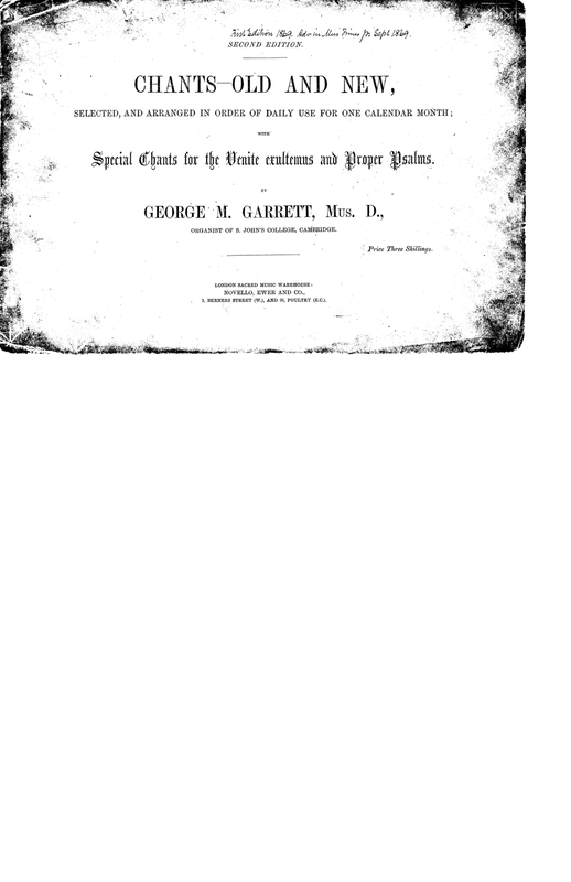 Anglican Chants, collected and edited by George M. Garrett, Organist of St. John's College, Cambridge from 1857-1897.