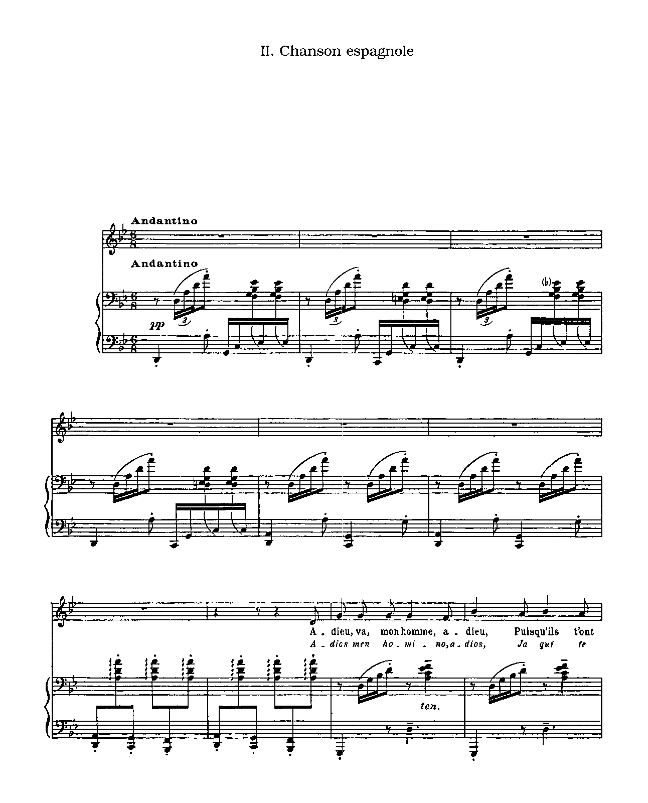 ⇒ 4 more: 1. Chanson espagnole • 2. Chanson française • 3. Mélodie italienne • 4. Chanson hébraïque