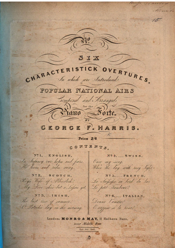 | Alternative. Title | Six Characteristick Overtures, in which are introduced popular national airs composed and arranged for the piano forte by George F. Harris |