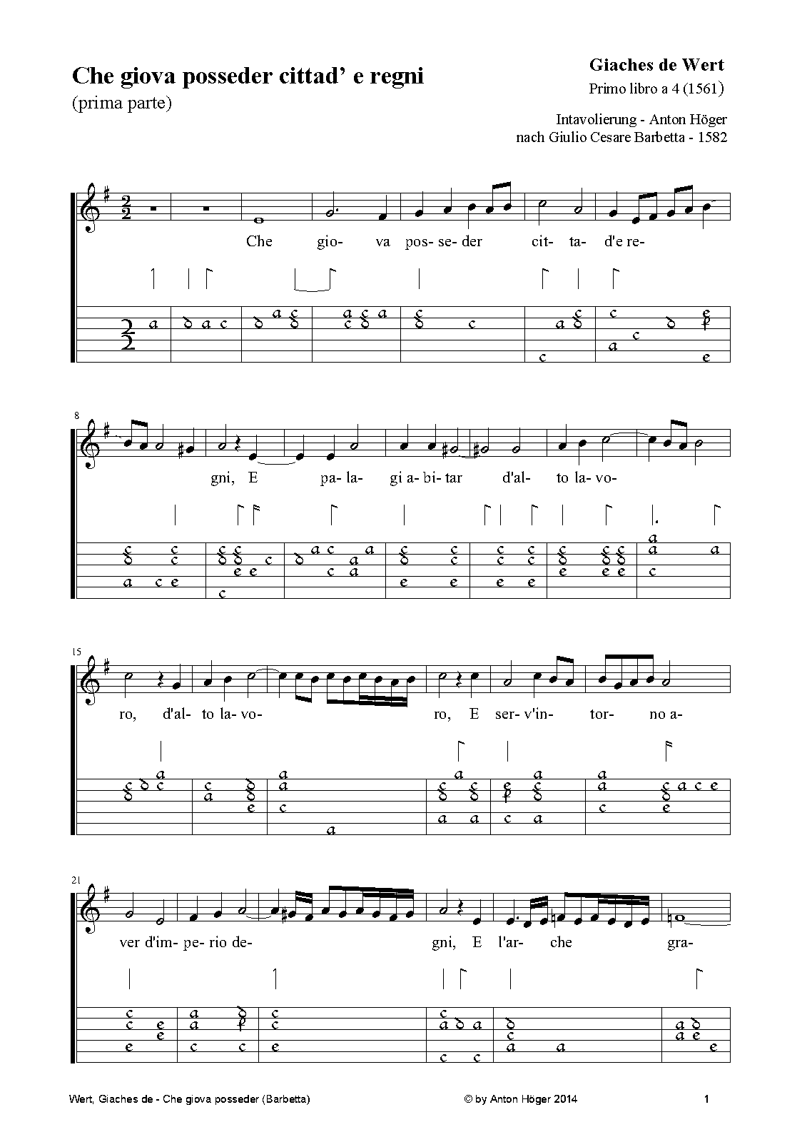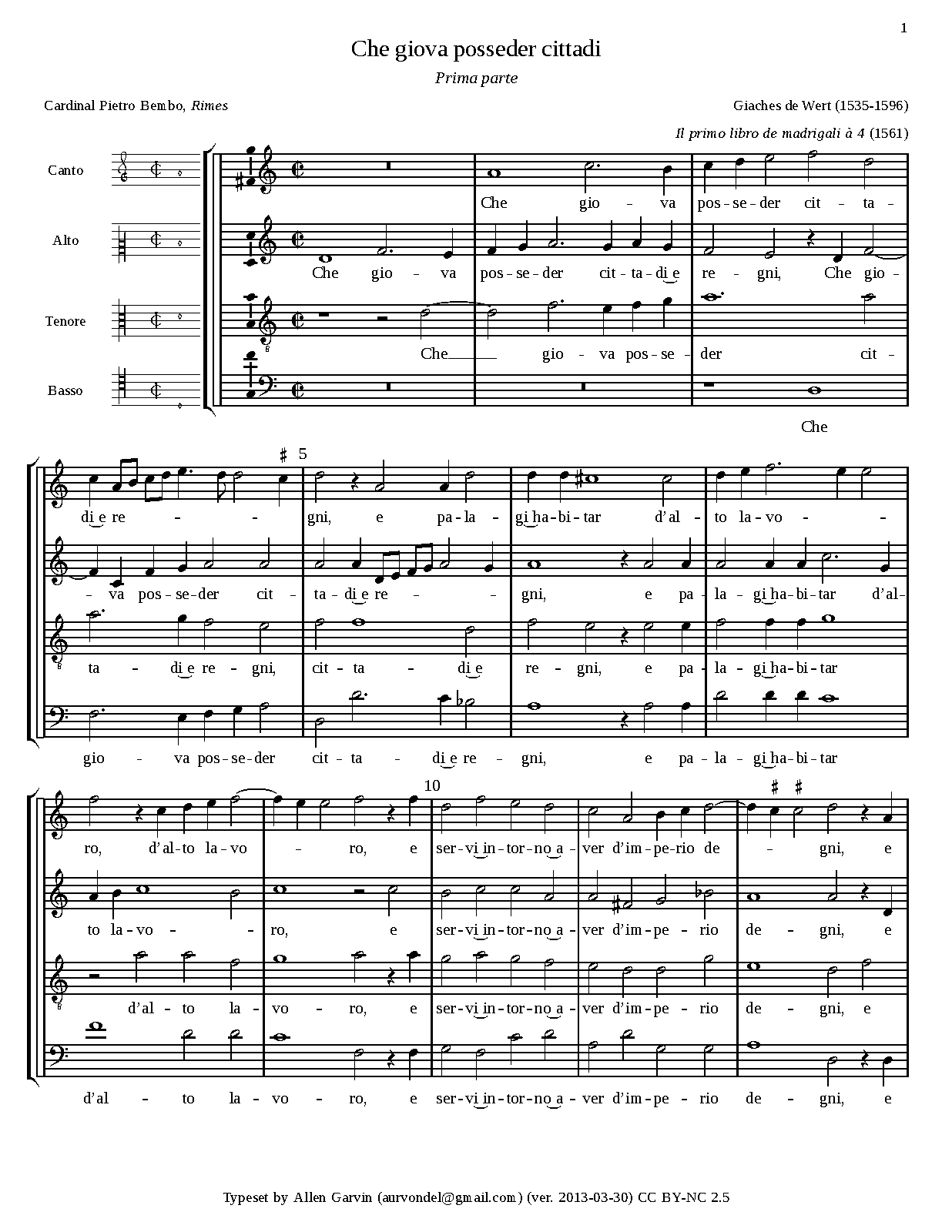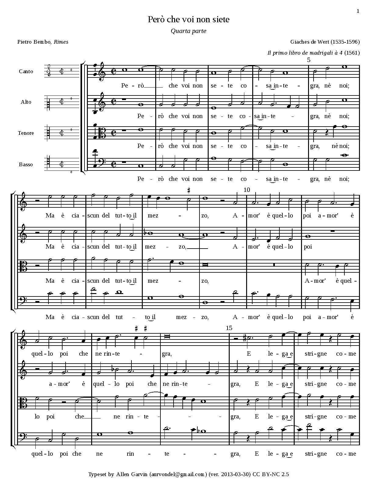 | First Publication | 1561 in Madrigali a 4 voci, Libro 1 (No.1) |