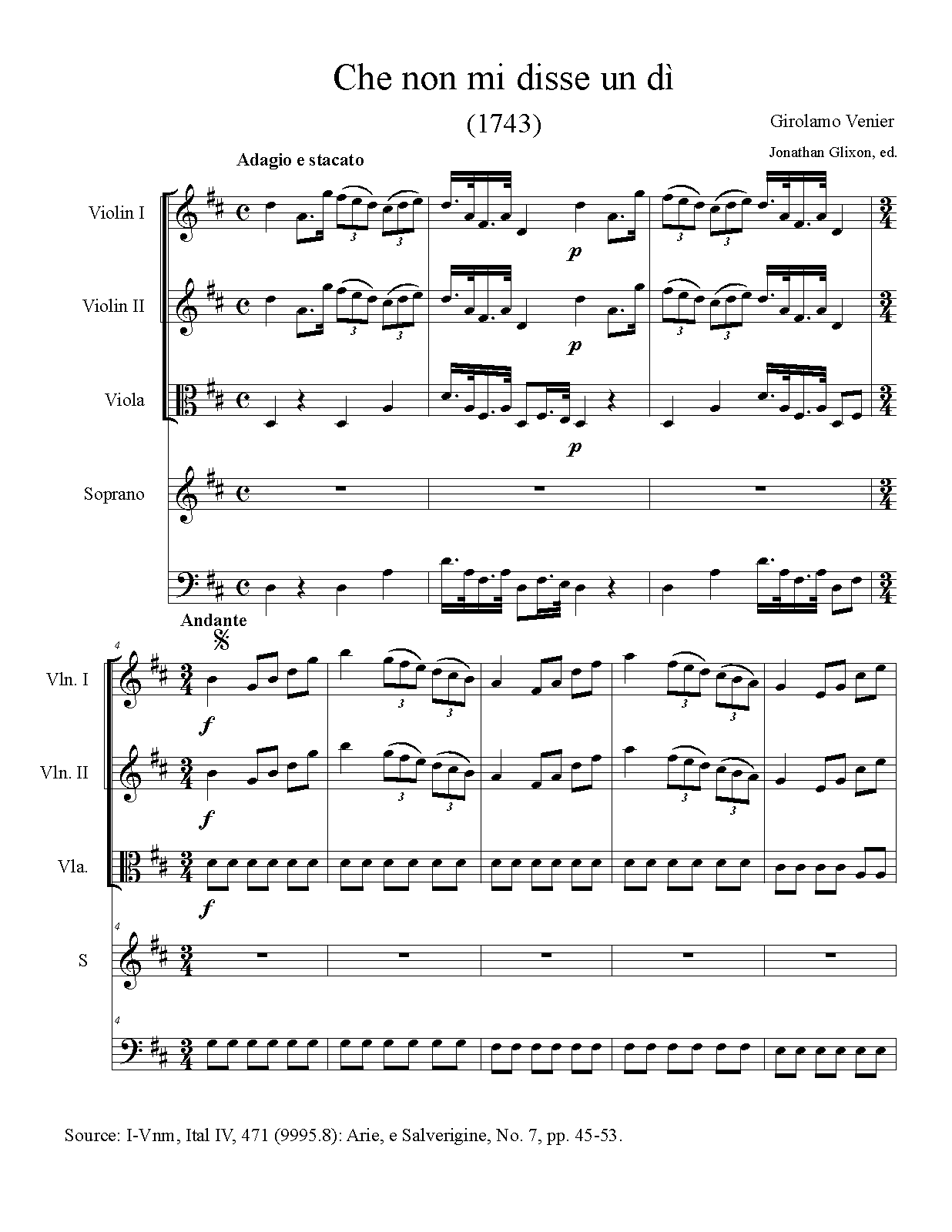 | Extra Information | Source: I-Vnm, Ital IV, 471 (9995.8): XIII: Arie, e Salverigine Del N:H: S: Girolamo Venier 1745 |