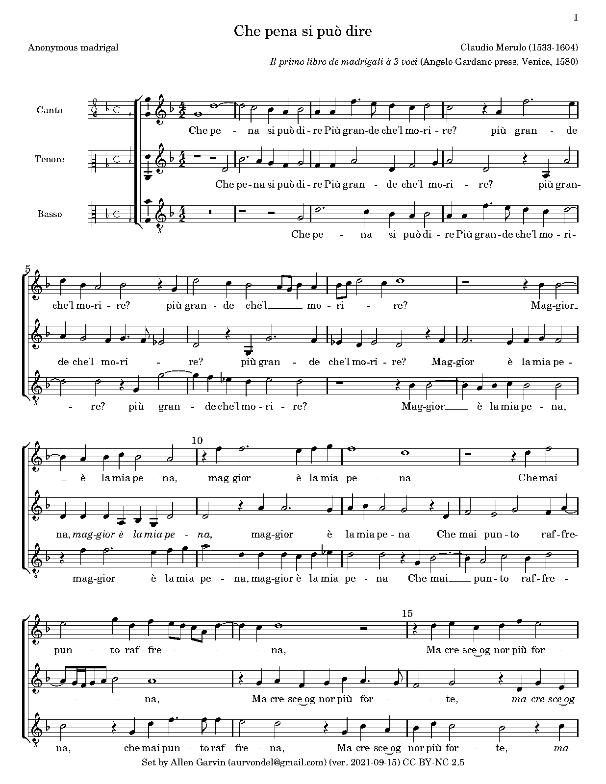 | First Publication | 1580 in Il primo libro de madrigali à 3 voci (Venice: Angelo Gardano) |