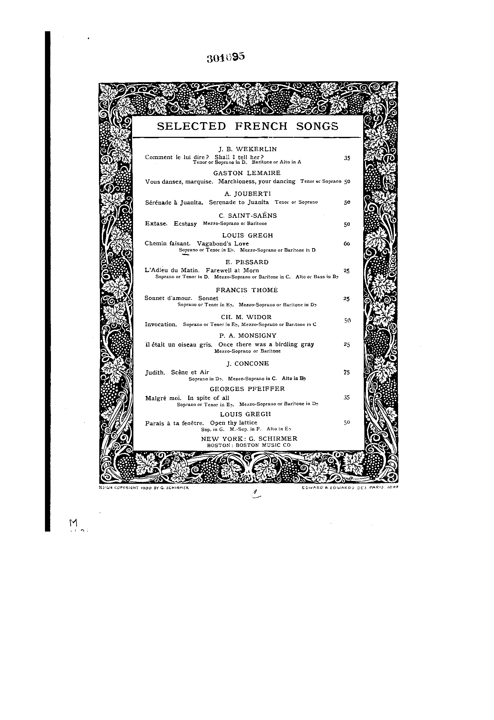 May be a voice and piano arrangement of his piano piece "Chemin faisant (Passacaille)", Op.57, for piano; both, I think, were published in 1889 (the piano piece certainly was, if not necessarily for the first time - BdlF 1889 p.732.)