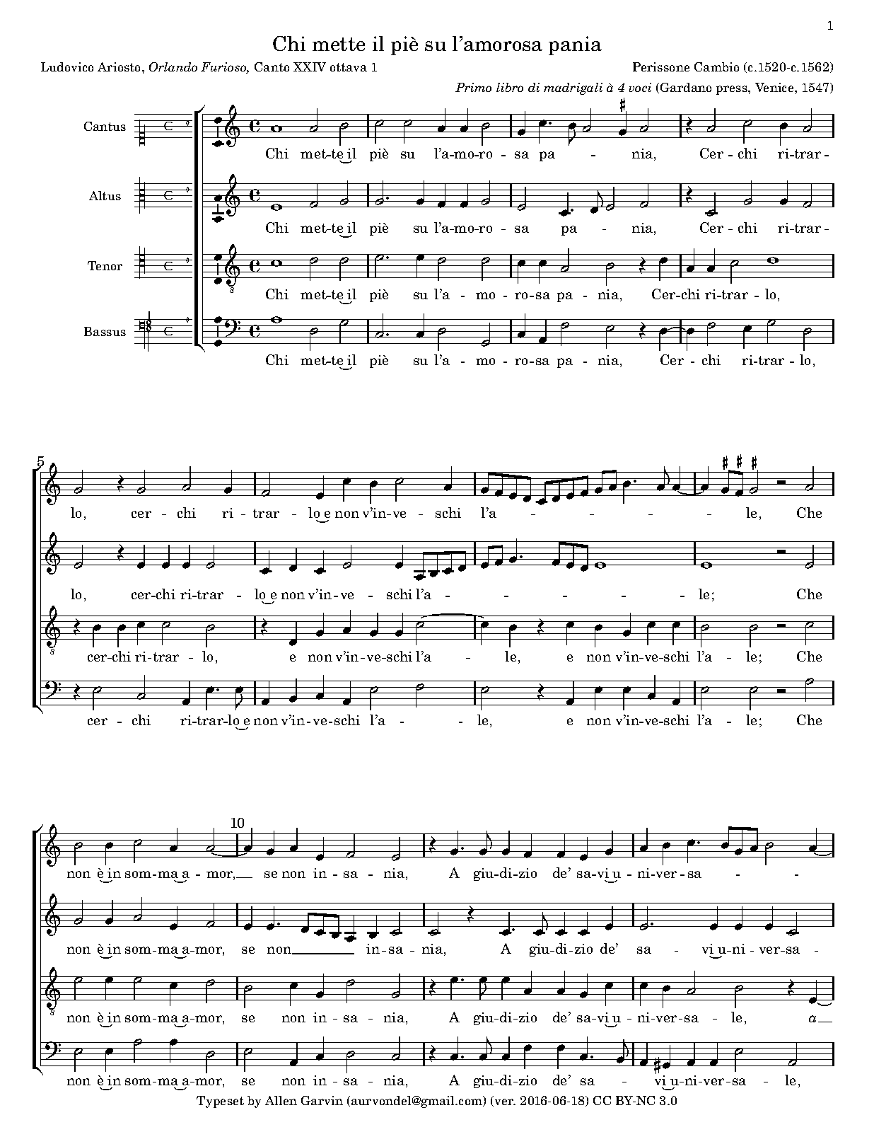 | First Publication | 1547 in Primo libro de madrigali a 4 voci (No.8) |