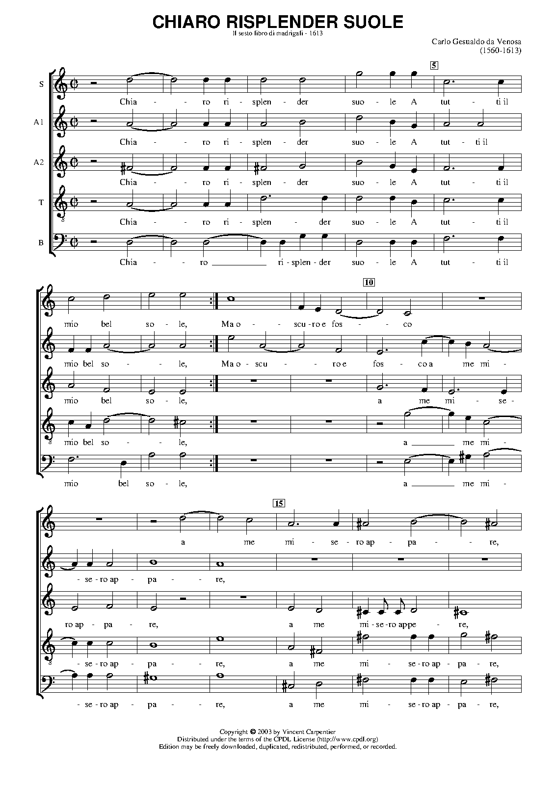| First Publication | 1611 in Madrigals, Libro 6 (No.5) |